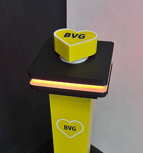 Wir branden die Buzzer in Unternehmensfarbe, mit Logo oder folieren vollflächig.